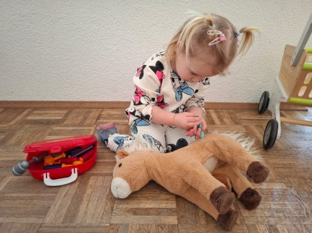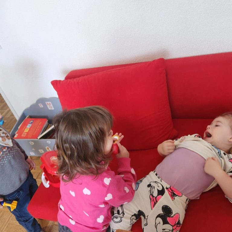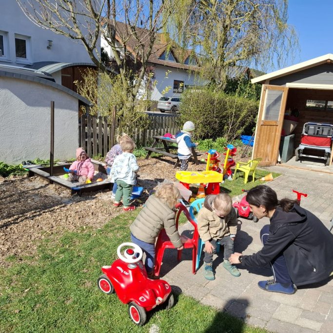 Das spielen untereinander ist ein wichtiger Bestandteil des Tages, die Kinder lernen so ,,Grenzen" der anderen kennen und erfreuen sich gemeinsam über neue Fortschritte. Sie brauchen aber auch immer mal wieder Zeit für sich und zum allein erkunden.